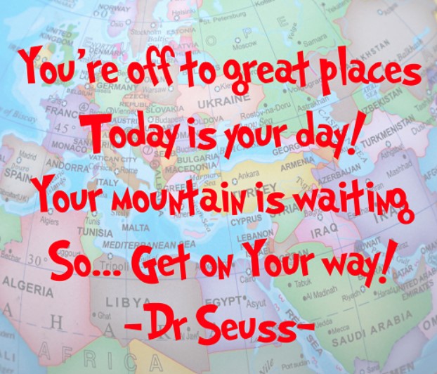 You're off to great places. Today is your day! Your mountain is waiting so... get on your way! - Dr Seuss